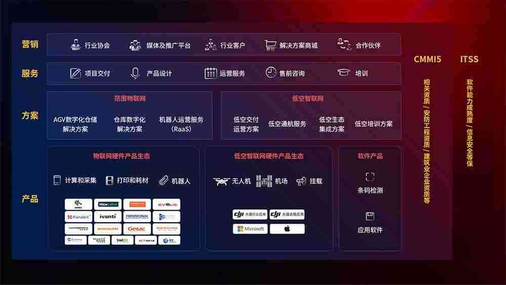 聚合国内外先进的物联网硬件产品品牌,,,,聚焦数字化仓储、、机器人运营、、低空智联网等领域,,共同打造适合客户业务场景的解决方案并提供交付服务
